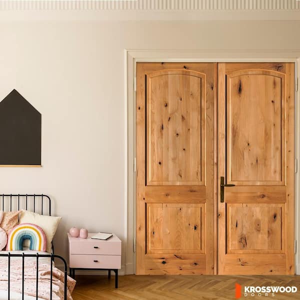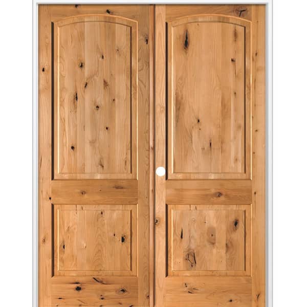 72 in. x 96 in. Rustic 2-Panel Arch Top Right Active Cedar Stain Knotty Alder Wood Double Prehung Interior Door