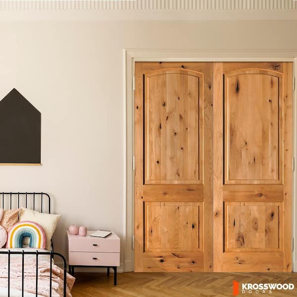 72 in. x 96 in. Rustic 2-Panel Arch Top Universal Cedar Stain Knotty Alder Wood Double Prehung Interior Door