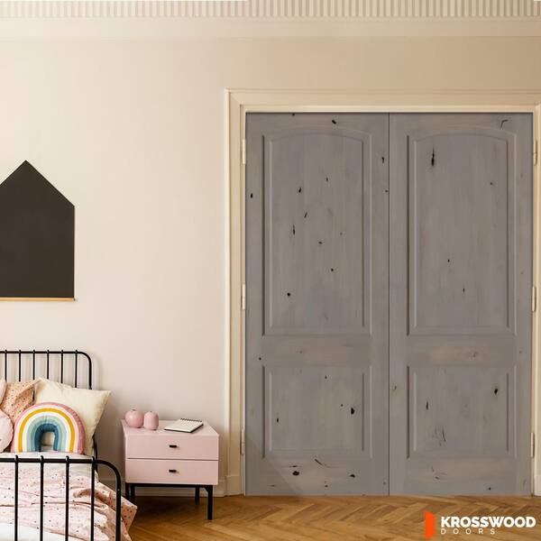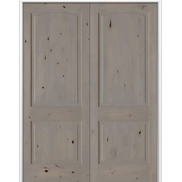 72 in. x 96 in. Rustic 2-Panel Arch Top Universal Weathered Gray Stain Knotty Alder Wood Double Prehung Interior Door