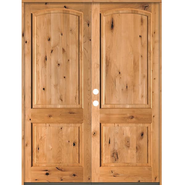 72 in. x 96 in. Rustic Knotty Alder 2-Panel Arch Top Clear Stain Right-Hand Inswing Wood Double Prehung Front Door