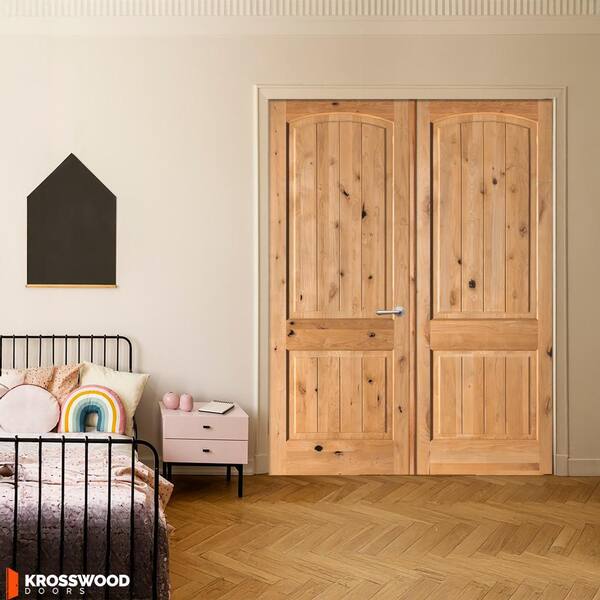 72 in. x 96 in. Rustic Knotty Alder 2-Panel Arch Top VG Left Hand Cedar Stain Wood Double Prehung Interior Door