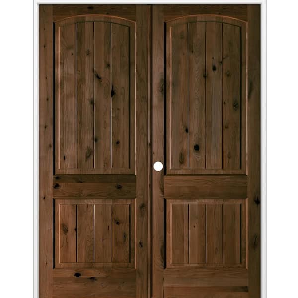 72 in. x 96 in. Rustic Knotty Alder 2-Panel Arch Top VG Right Hand Espresso Stain Wood Double Prehung Interior Door