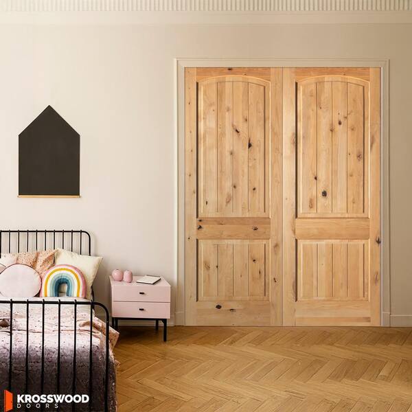 72 in. x 96 in. Rustic Knotty Alder 2-Panel Arch Top VG Universal Cedar Stain Wood Double Prehung Interior Door