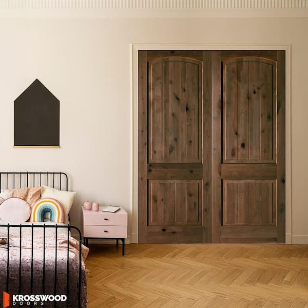 72 in. x 96 in. Rustic Knotty Alder 2-Panel Arch Top VG Universal Espresso Stain Wood Double Prehung Interior Door