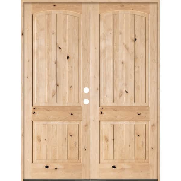 72 in. x 96 in. Rustic Knotty Alder Arch Top Unfinished /V-Groove Left-Hand Inswing Wood Double Prehung Front Door