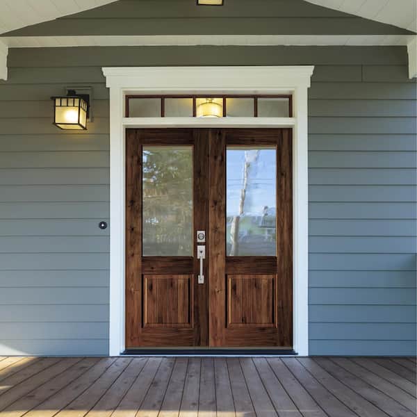 72 in. x 96 in. Rustic Knotty Alder Wood Clear Half-Lite provincial stain/VGroove Left Active Double Prehung Front Door