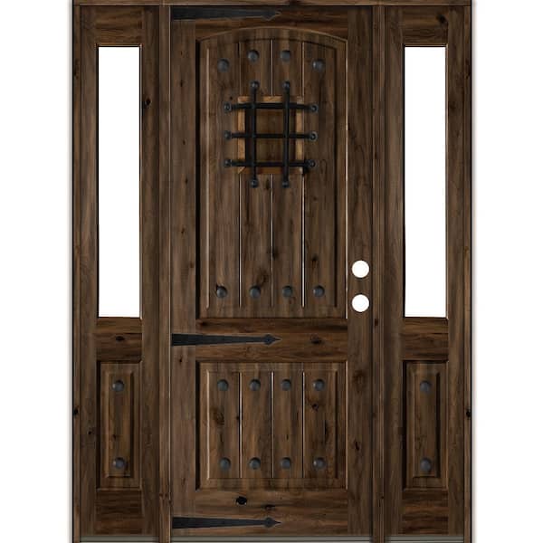 76 in. x 96 in. Mediterranean Knotty Alder Left-Hand/Inswing Clear Glass Black Stain Wood Prehung Front Door w/DHSL