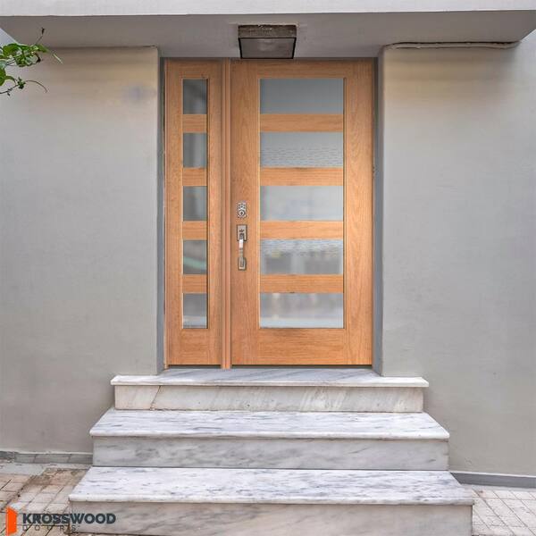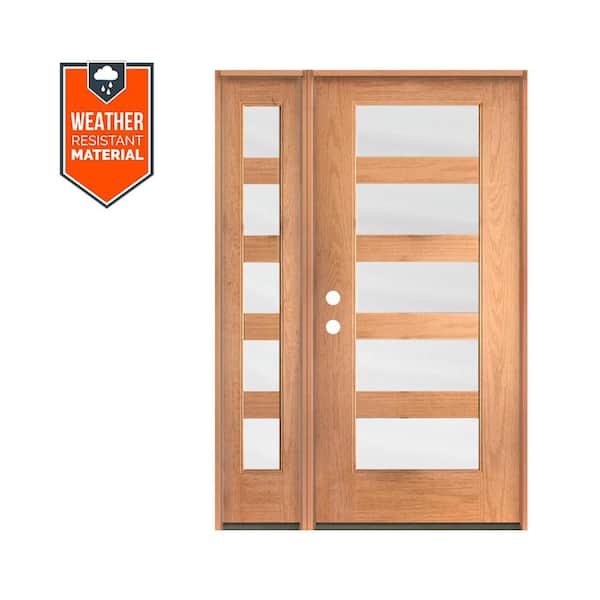 ASCEND Modern 50 in. x 79 in. 5-Lite Right-Hand/Inswing Satin Glass Teak Stain Fiberglass Prehung Front Door/LSL