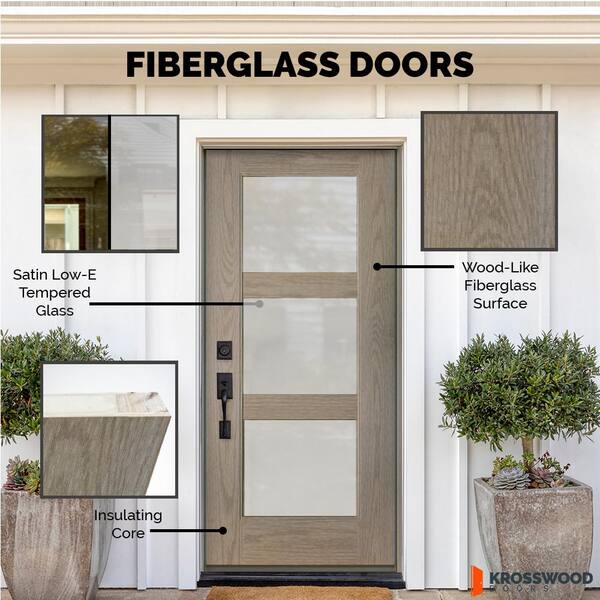 • Insulated, energy-efficient Low-E tempered satin glass front door
