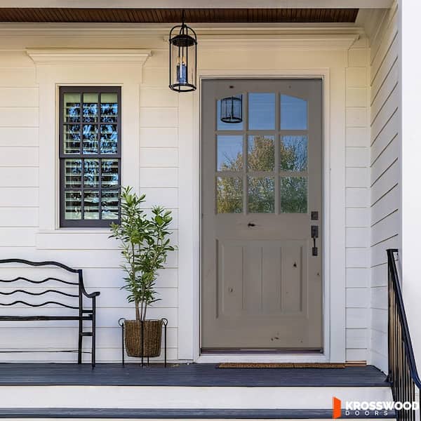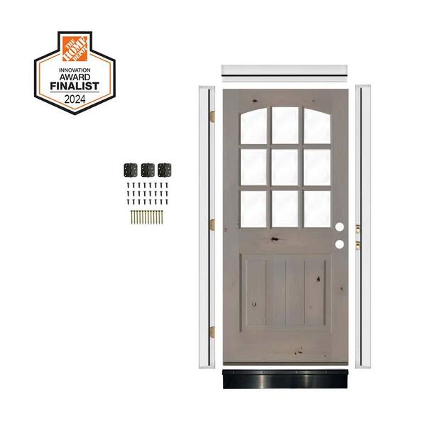 DIY 36 in. x 80 in. Arch Top Left-Hand Clear Glass Grey Stain Knotty Alder Wood Front Door Kit w/ Quick Assemble Jamb