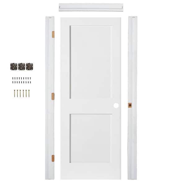 28 in. W. x 80 in. Shaker 2-Panel Left-Hand Primed Solid Core MDF Wood Single Interior Door Kit w/ Quick Assemble Jamb