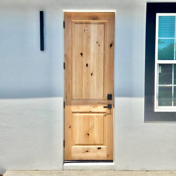 36 in. x 80 in. Rustic Knotty Alder Square Top Left-Hand Clear Stain Wood Front Door Kit w/ Quick Assemble Jamb