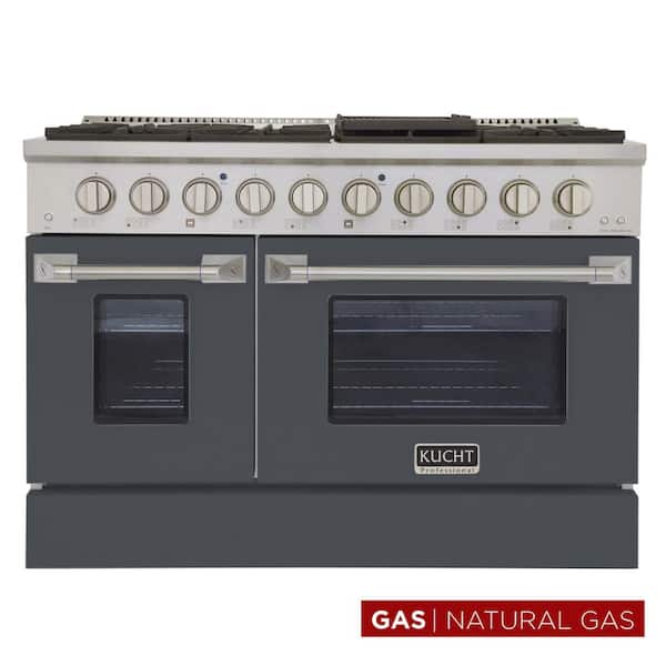 Pro-Style 48 in. 6.7 cu. ft. 8-Burners with Double Oven Natural Gas Range in Stainless Steel and Cement Grey Oven Door
