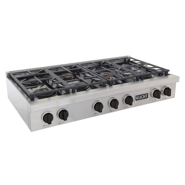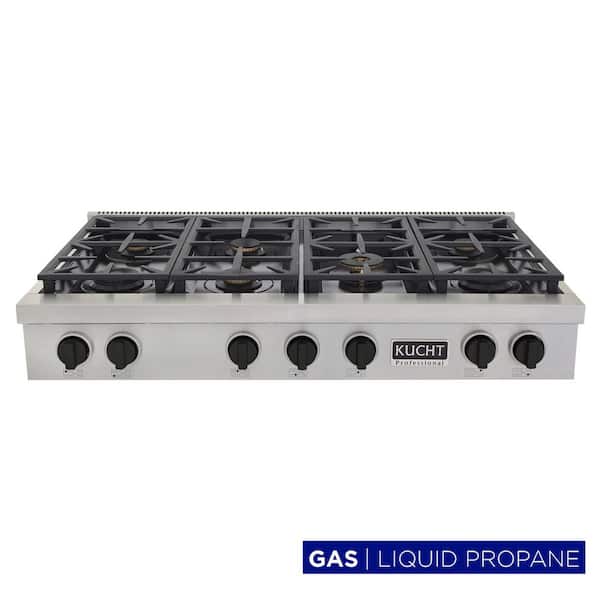 Professional 48 in. Liquid Propane Range Top in Stainless Steel and Tuxedo Black Knobs with 7 Burners