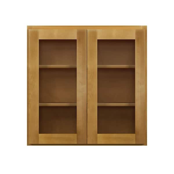 Aberdeen Recessed 36 in. W x 36 in. H x 12 in. D in Caramel Plywood Assembled Glass Door with Finished Interior Wall