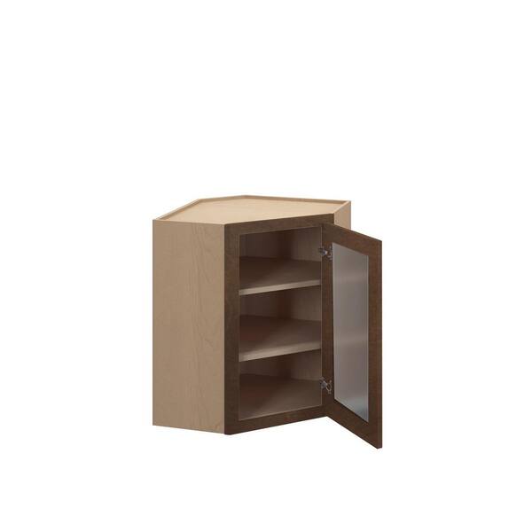 Amherst Shaker 24 in. W x 30 in. H x 12 in. D in Walnut Plywood Assembled Frosted Glass Wall Corner Diagonal