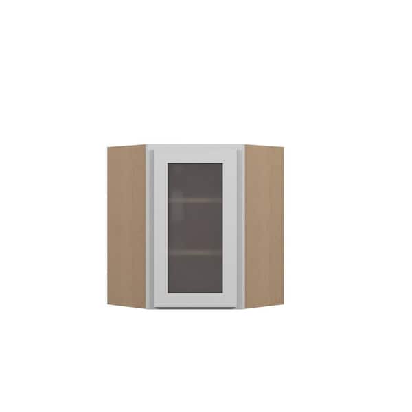 Bedford Shaker 24 in. W x 36 in. H x 12 in. D in Painted White Plywood Assembled Frosted Glass Corner Diagonal Wall