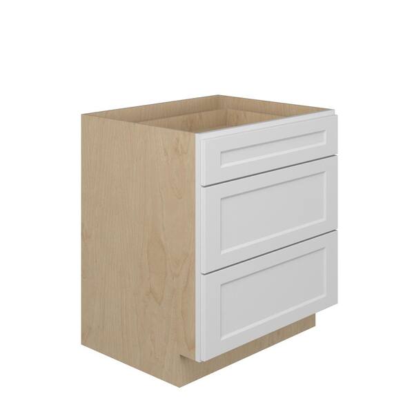 Norfolk Shaker 30 in. W x 34.5 in. H x 24 in. D in Painted White Plywood Assembled Drawer Base Cabinet