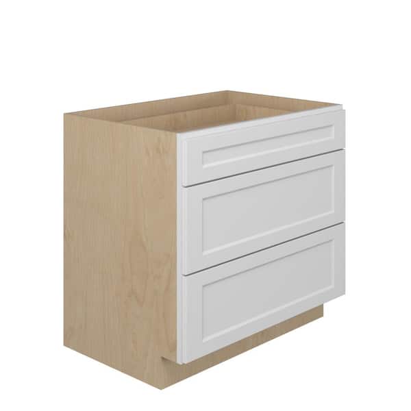 Norfolk Shaker 36 in. W x 34.5 in. H x 24 in. D in Painted White Plywood Assembled Drawer Base Cabinet