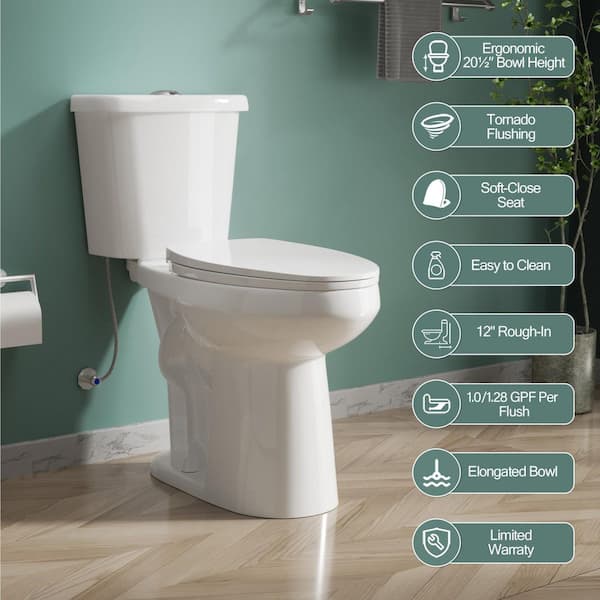 21 in Extra High Toilet White Dual Flush 1.0/1.28 GPF Elongated Bowl 2-Piece Toilet with Seat Included High Efficiency