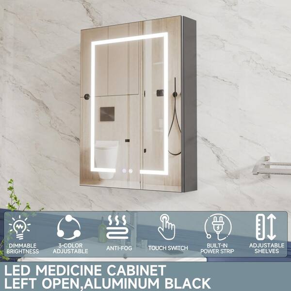24 in. W x 32 in. H Rectangular Black Aluminum Recessed/Surface Mount Left LED Medicine Cabinet with Mirror
