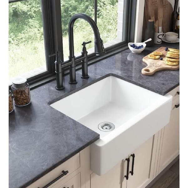 White Fireclay 24 in. Single Bowl Farmhouse Apron Kitchen Sink