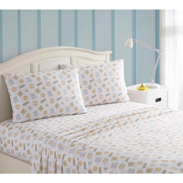 4-Piece Gray and Yellow Construction Kids Full Sheet Set