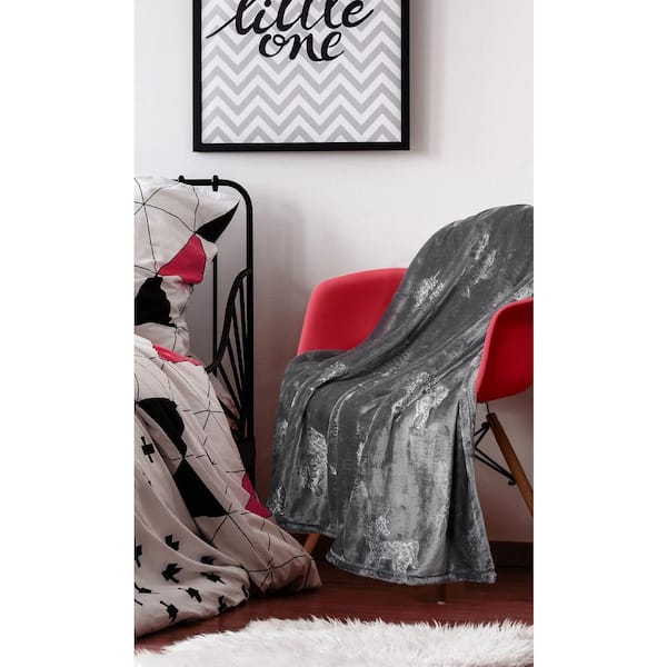 Unicorn Dreams Embossed Grey Velvet Plush Twin Blanket