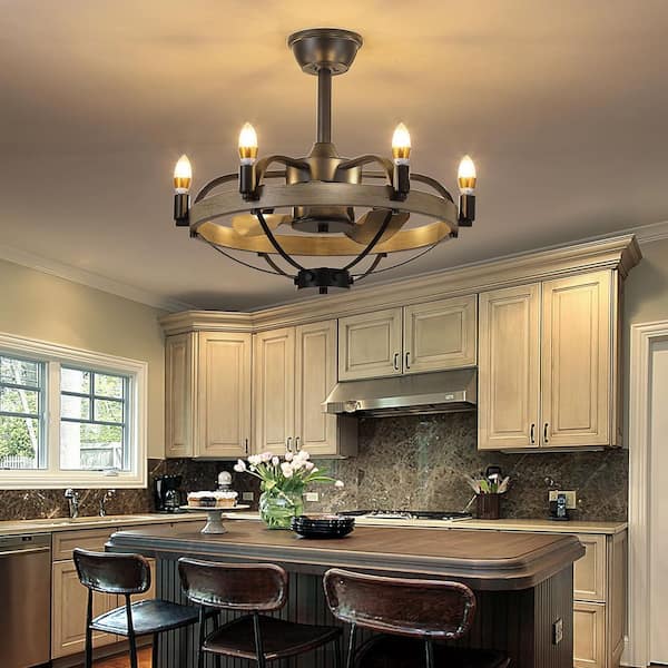 23 in. Indoor Black Candle Ceiling Fan with Lights Remote Control Farmhouse Rustic Chandelier Candles (Bulbs Included)