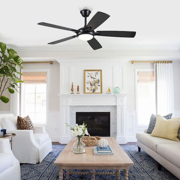 52 in. Indoor/Outdoor Modern Black Ceiling Fans with Dimmable 3 Colors Lights and Remote