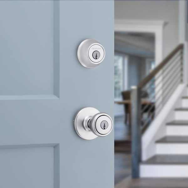 690 Tylo Satin Chrome Keyed Entry Knob and Single Cylinder Deadbolt Combo Pack Featuring SmartKey Security