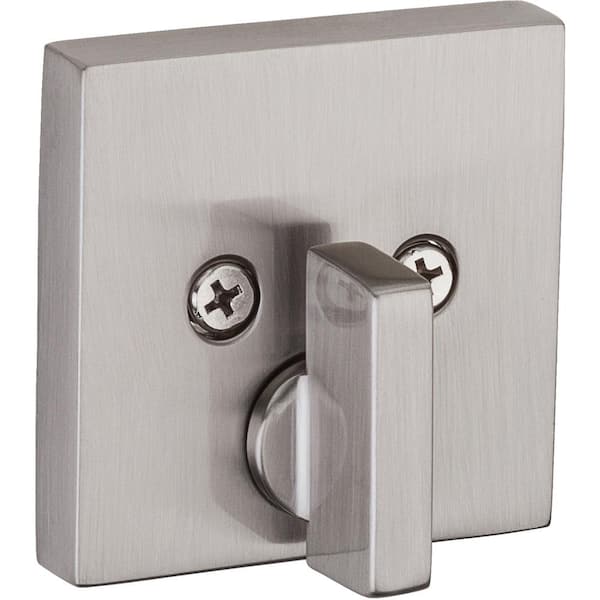 Downtown Low Profile Satin Nickel Square Single Cylinder Contemporary Deadbolt featuring SmartKey Security