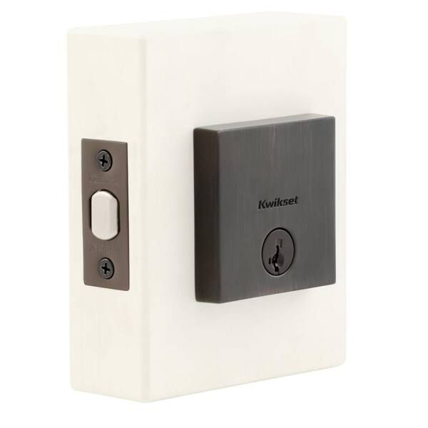 Downtown Low Profile Venetian Bronze Single Cylinder Square Contemporary Deadbolt Featuring SmartKey Security