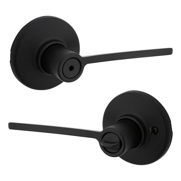Ladera Matte Black Contemporary Round Privacy Bed/Bath Door Handle with Lock