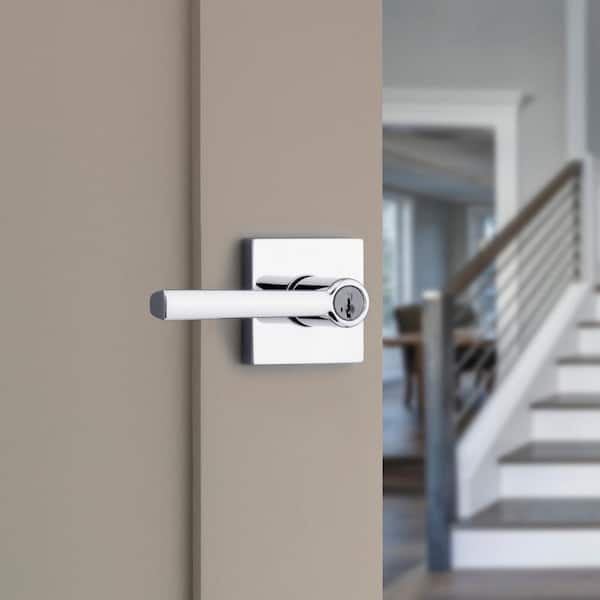 Montreal Square Polished Chrome Entry Door Handle Featuring SmartKey Security