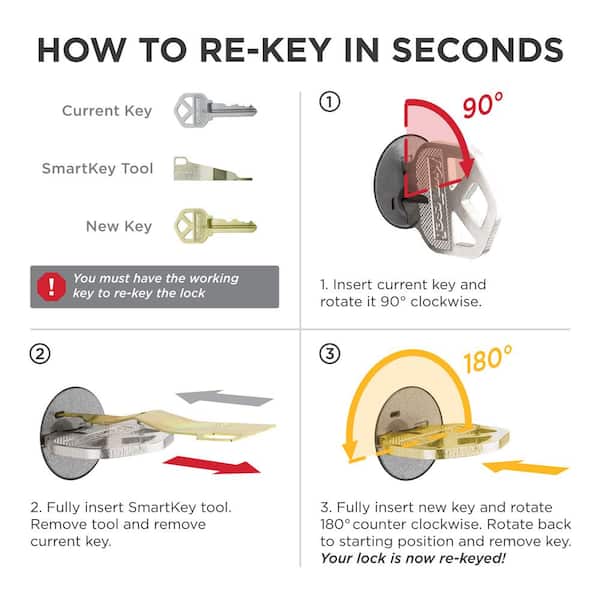 • SmartKey Security re-key allows you to rekey your lock in seconds