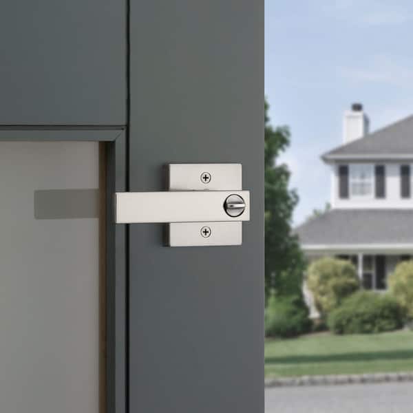 Singapore Square Satin Nickel Keyed Entry Door Handle with Microban Featuring SmartKey Security