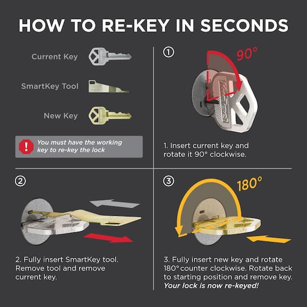 • SmartKey Security re-key allows you to rekey your lock in seconds
