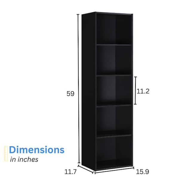 59 in. Tall Black Wood 5-Shelf Bookcase with Open Storage 5-Tier Bookshelf for Home or Office