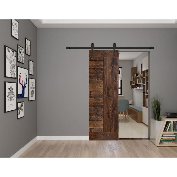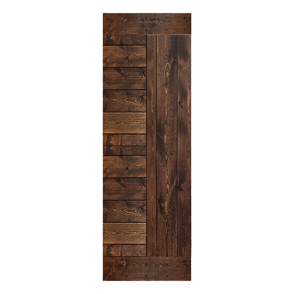 L Series 28 in. x 84 in. Dark Walnut Finished Solid Wood Barn Door Slab - Hardware Kit Not Included