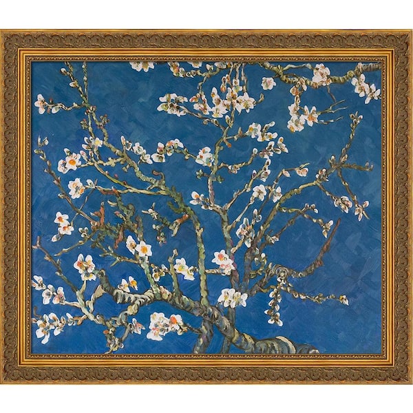 Branches of an Almond Tree in Blossom with Baroque Antique Gold Frame by Gogh Framed Art Print Wall Art 24 in. x 28 in.