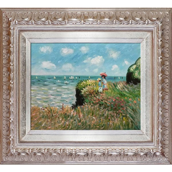 Cliff Walk at Pourville by Claude Monet Elegant Champagne Wood Framed Nature Oil Painting Art Print 14 in. x 16 in.