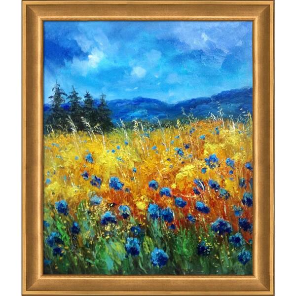 Cornflowers 45 Reproduction by Pol Ledent Muted Gold Glow Framed Abstract Oil Painting Art Print 24 in. x 28 in.