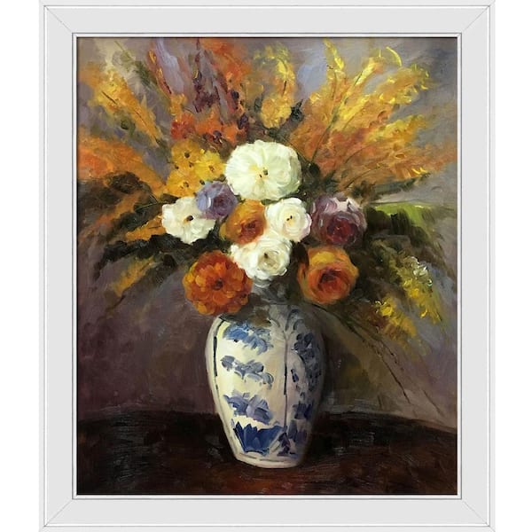 Dahlias by Paul Cezanne Galerie White Framed Nature Oil Painting Art Print 24 in. x 28 in.