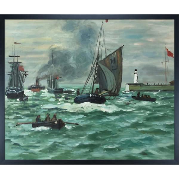 Entrance to the Port of Honfleur by Claude Monet Studio Black Wood Framed Travel Painting Art Print 21.5 in. x 25.5 in.