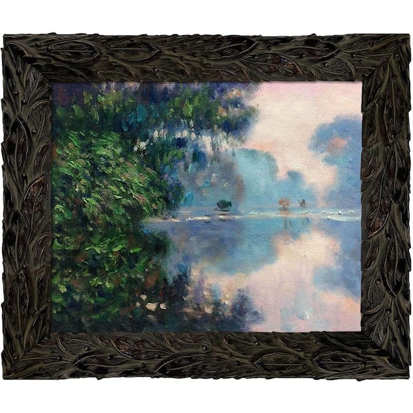 Morning on the Seine Near Giverny by Claude Monet Framed Oil Painting Abstract Wall Art 11.24 in. x 13.24 in.