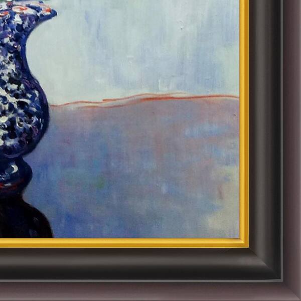 Nasturtiums in a Blue Vase by Claude Monet Opulent Framed Abstract Oil Painting Art Print 26 in. x 30 in.