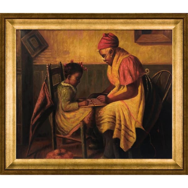 Playing Checkers by Harry Roseland Athenian Gold Framed Typography Oil Painting Art Print 25 in. x 29 in.