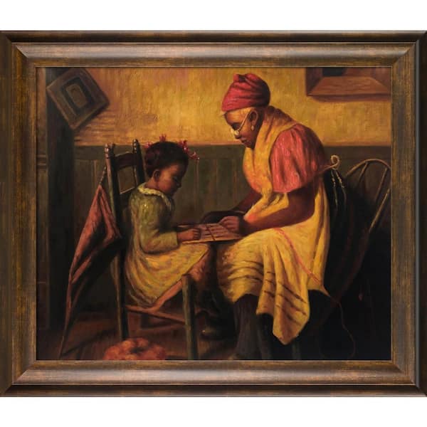 Playing Checkers by Harry Roseland Modena Vintage Framed Typography Oil Painting Art Print 25 in. x 29 in.