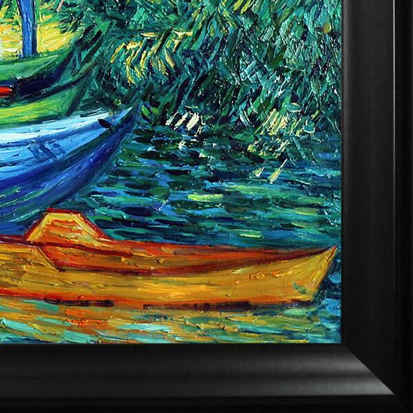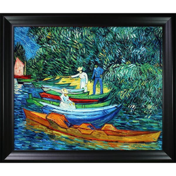 Rowing Boats on the Banks of Oise by Vincent Van Gogh Black Matte Framed Travel Oil Painting Art Print 25 in. x 29 in.